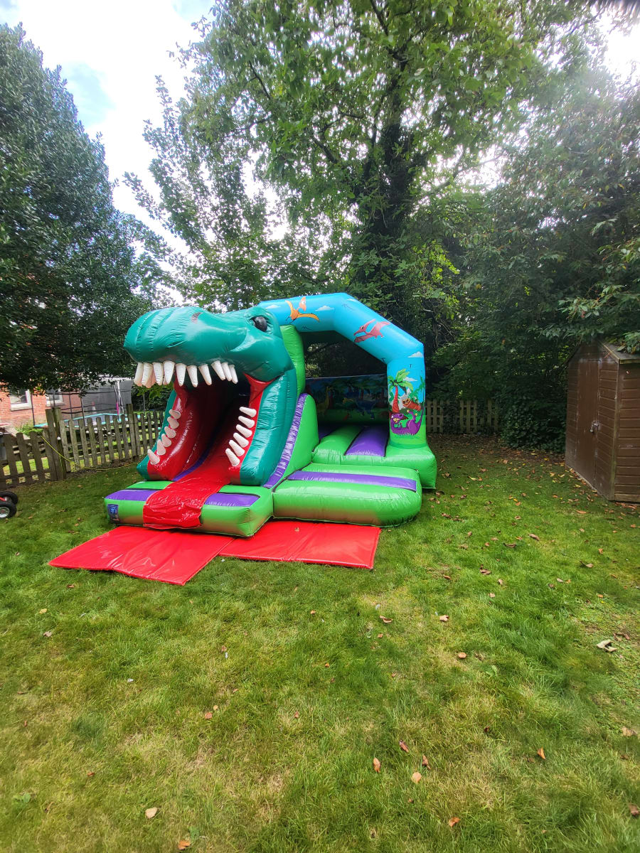 Our brand new 3D Dino front slide combo is great for any party as you can slide straight down though the dinosaur's mouth.