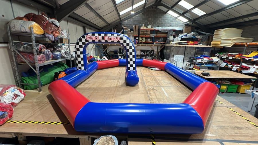 The DIDI Car Race Track With Cars delivers instant thrills. This compact race track set includes multiple cars and inflatable track. It sparks imaginative play, improves motor skills, and creates repeatable racing action. Perfect for indoor hire in halls and a great add on to your booking.